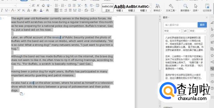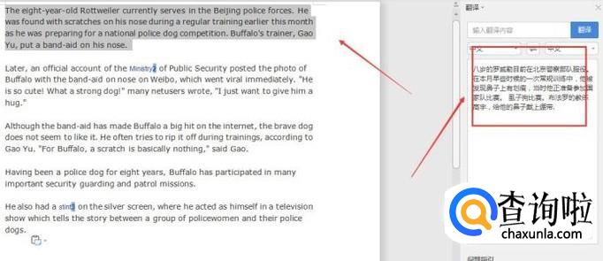 然后在右侧就可以看到翻译的内容,如下图所示: