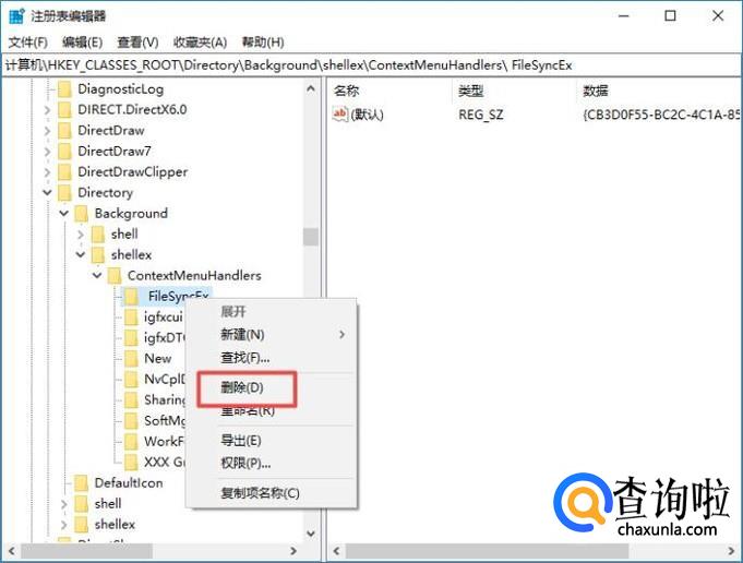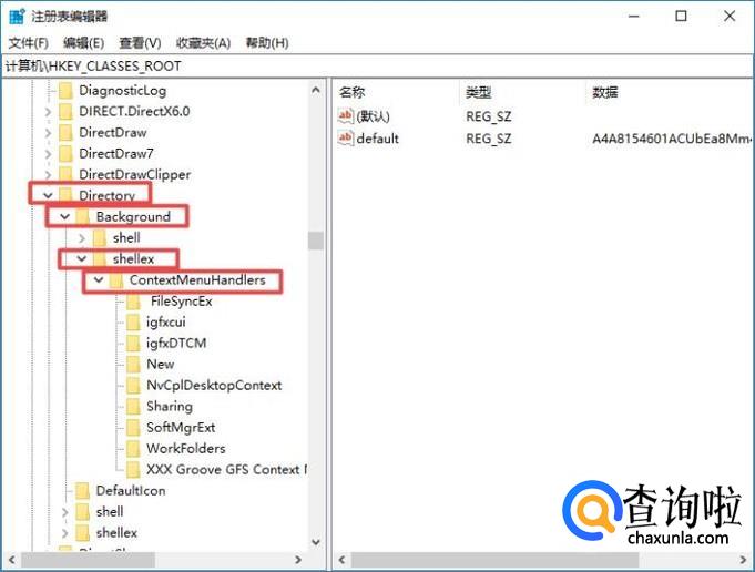 然后我们依次点开DirectoryBackgroundshellexContextMenuHandlers;