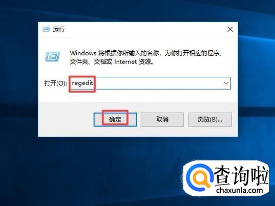 然后我们输入regedit,之后点击确定;