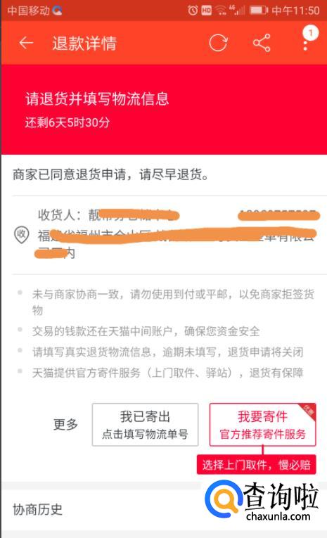 淘宝退货中,菜鸟驿站上门取件,如何付快递费