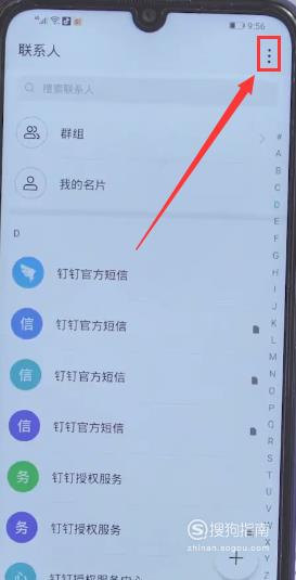 首先我们在旧手机打开【手机联系人】,点击右上角的【三个点】。