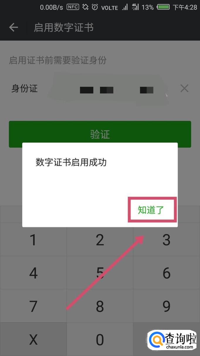 验证完成后,数字证书就正式启用了,点击“知道了”即可。