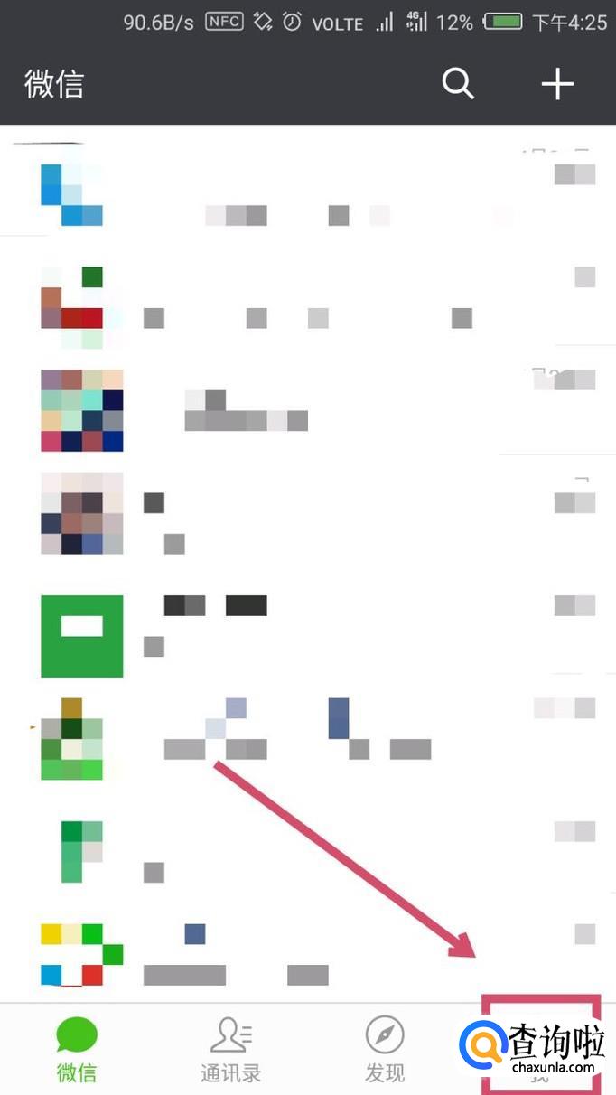 首先打开微信,再界面右下角找到“我”,点击进入。