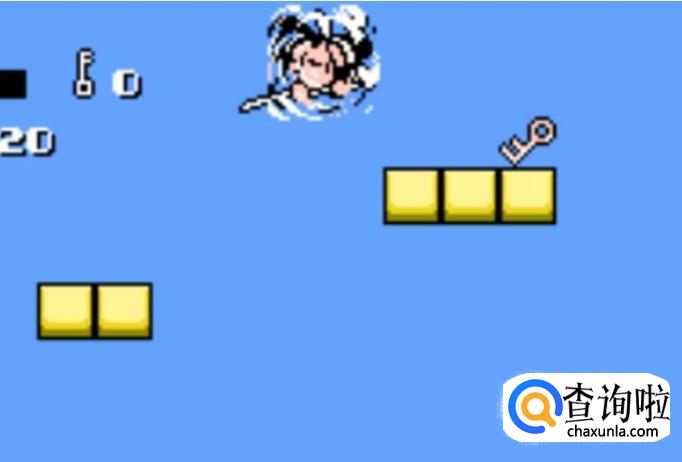 前面不远,上面的墙上有一把钥匙,这个很关键,我们一定要吃掉。