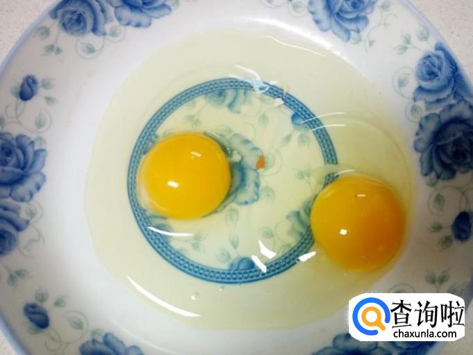 鸡蛋打入盘中,搅拌成鸡蛋液。切好葱,姜,备用。