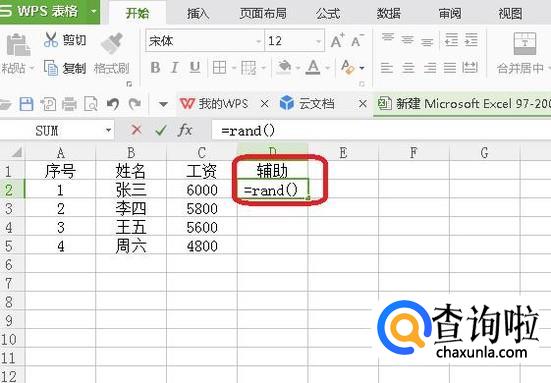 我们可以做一个辅助列。如图所示,在D列中的D2单元格输入函数:=rand(),然后按回车键。