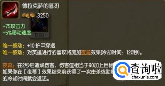 第四件装备选择幕刃,这件装备适合亚索的游走,在提供穿透的同时,第一次攻击会增加额外的物理伤害。