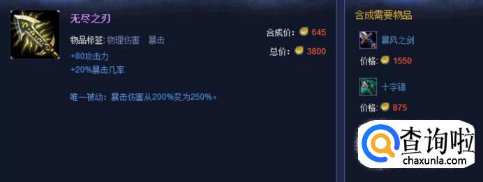第五件装备选择无尽,这件装备使亚索的输出变得非常高,有翻倍暴击的效果,让亚瑟的输出更为爆炸。