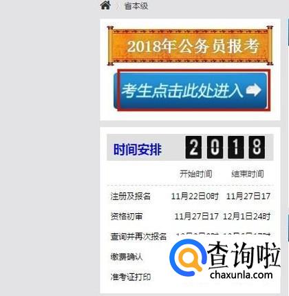 接着点击考生点击此处进入,如下图所示。