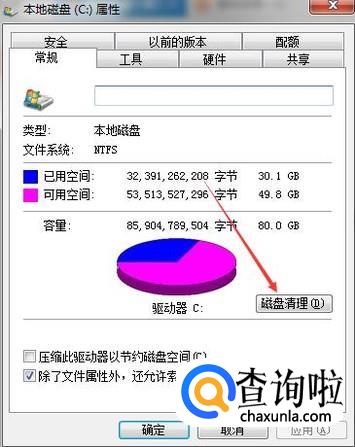 之后再点击对话框中的【磁盘清理】功能。
