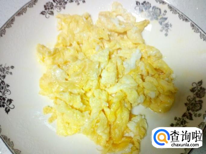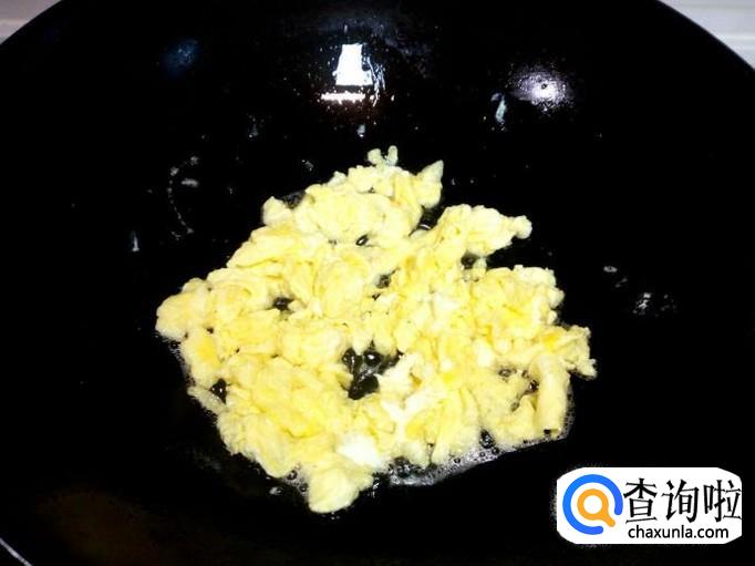 用锅把鸡蛋炒出来,炒至八分熟,盛出备用。