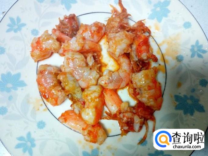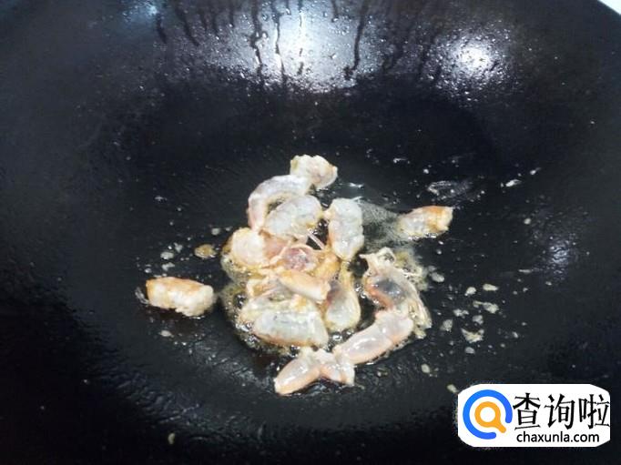 把腌制好的虾仁用锅炒出来,炒至颜色变红,盛出备用。