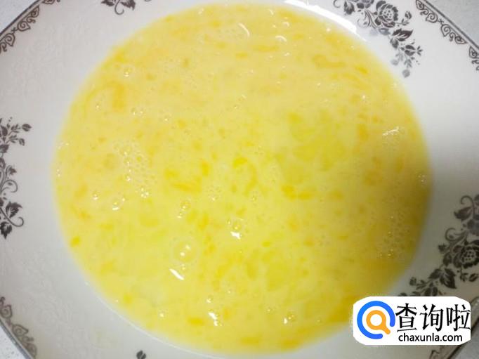 鸡蛋打入盘中,搅拌成鸡蛋液。