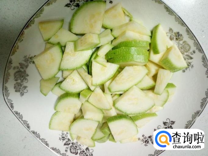 角瓜用水清洗干净,控干水分,切成片(因为这个角瓜比较嫩,所以不用去除瓜瓤)。切好葱,姜,备用。