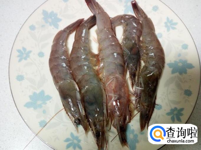 青虾 5个,角瓜 150克,鸡蛋 2个。