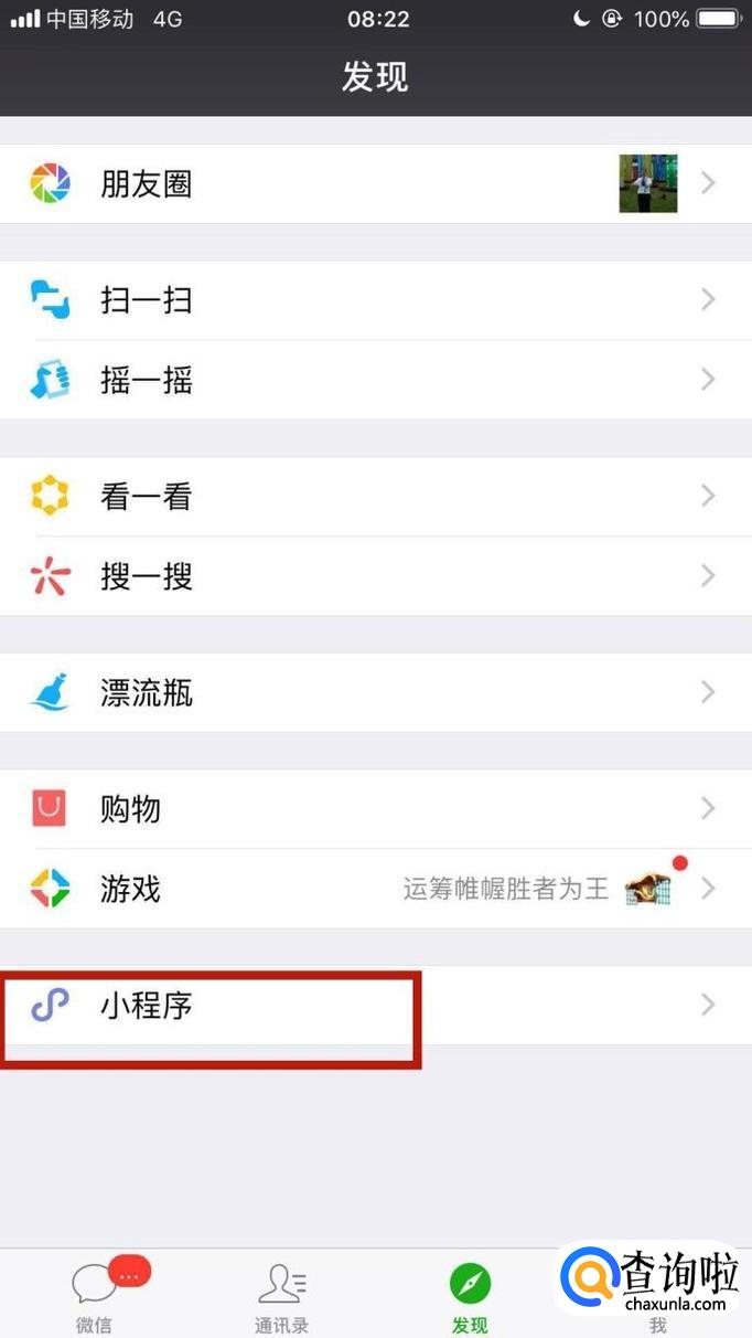 首先点击微信中的小程序,如下图所示。