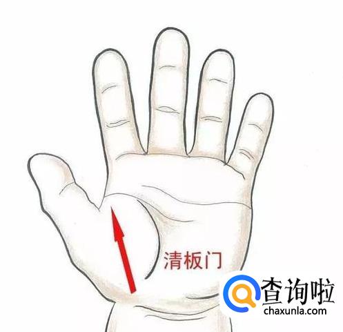 板门位于手掌大鱼际平面。自掌根推向指根,其中从板门推向腕横纹能止泻;从横纹推向板门能止呕;