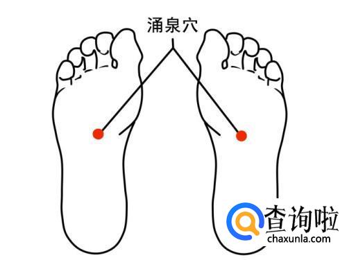 涌泉穴位于屈趾足掌心正前方凹陷中,以左手托住患儿足跟,再以右手拇指向足趾方向推,或用食、中指端揉,主治发热,呕吐,腹泻,五心(指两手心,两足心与心胸处)烦热;