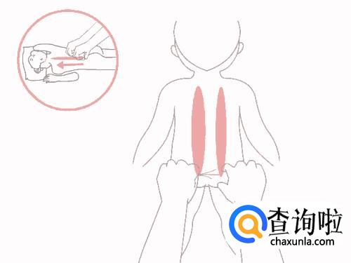 双手捏住脊柱两侧肌肤,从下往上提捏,动作轻柔,以小儿舒适为度,捏30次;