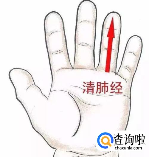肺经位于无名指末端罗纹面,从无名指面向指根方向直推200-300次,止咳效果很好。