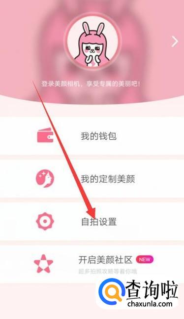进入之后,点击“自拍设置”,进入下一页面,如图所示。