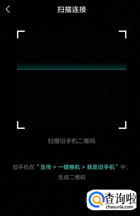 进入之后,用新手机扫描旧手机上面的二维码,扫描成功之后就会自动连接旧手机的无线热点。