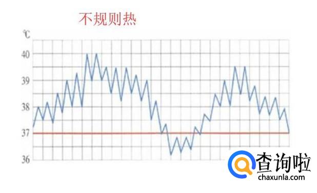 不规则热,体温在24小时内变化不规则,常见于流行性感冒。