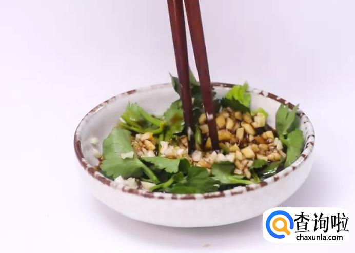 调汁:放香菜、蒜末、醋、生抽。