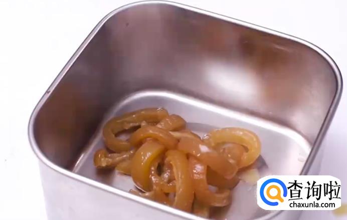 将猪皮捞出倒入模具。