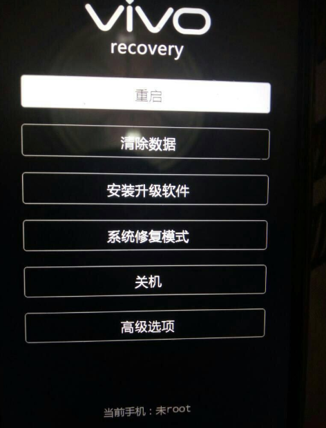 2、在关机状态下同时按住锁屏键和音量加键,当出现vivo界面时松开锁屏键继续按住音量加键,选择进入recovery模式(上下音量键为选择键,电源键为确定键),选择清除数据,等界面跳转之后,再选择还原或清除所有设置后返回上层重启手机即可。