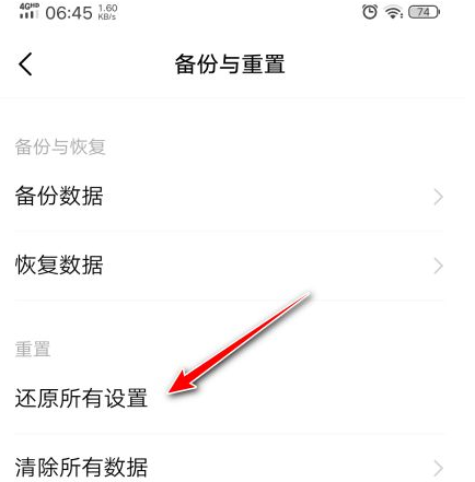 ②Funtouch OS 9.2以下:进入设置--更多设置--备份与重置/恢复出厂设置--还原所有设置/清除所有数据;