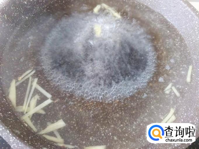 锅装适量的水放点姜丝进去煮沸,然后放腌制好的牛心进去。