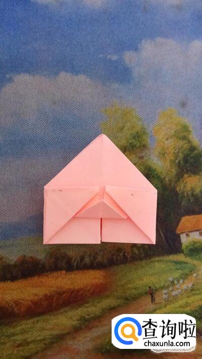 然后两边都向上折出两个三角形,再把中间的三角形向上折,左边向右翻过来,然后再折出两个三角形,下面的三角形也往上折,另外一面也操作一下。
