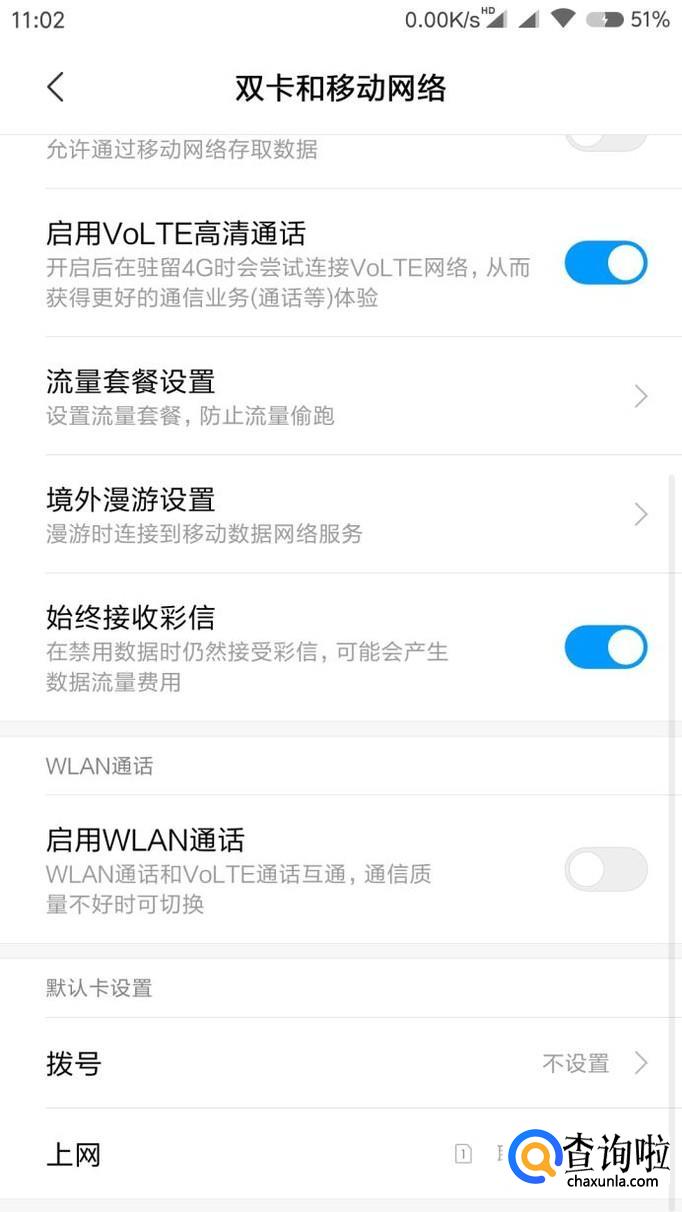 点击相应卡的“联网设置”,注意不要点错卡了。