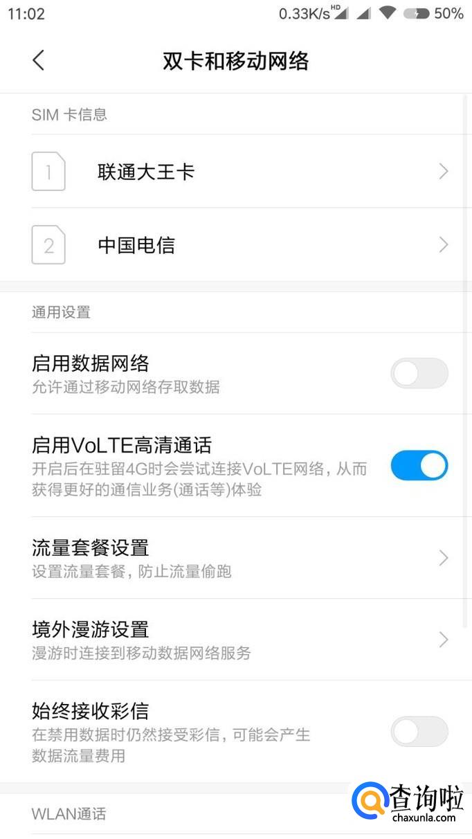 首先确保手机上网卡是大王卡,下拉状态栏,长按流量图标,看好大王卡是卡1还是卡2,然后把上网卡改为大王卡。