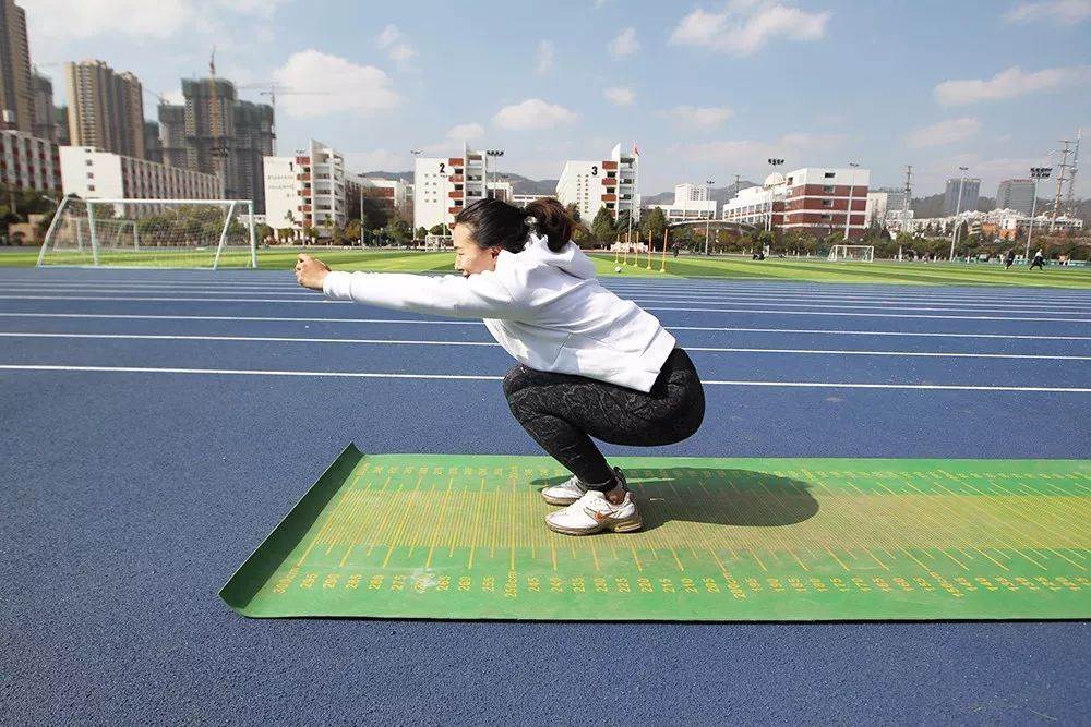 落地缓冲:收腹举腿,小腿往前伸,同时双臂用力往后摆动,并屈膝落地缓冲。要点:小腿前伸的时机把握好,曲腿前伸臂后摆,落地后往前不往后。