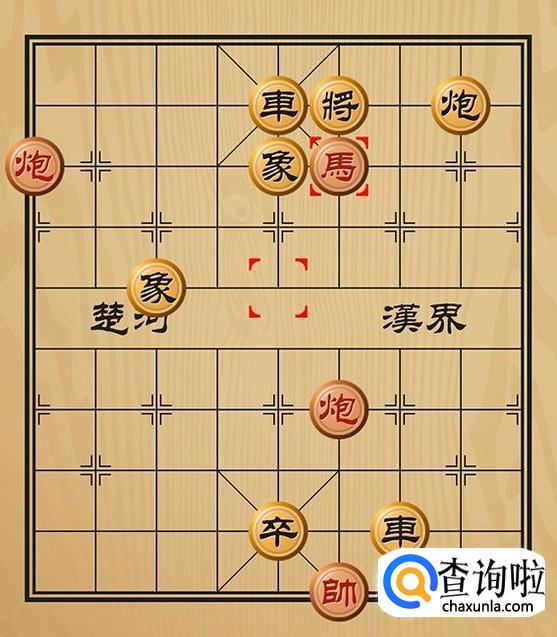 红方马二退四将军,黑方只能车5进1阻挡。