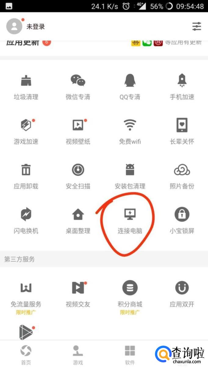 首先,我们电脑上需要安装应用宝,应用宝下载之后,可以看到左上角有个“未连接手机”,点此我们可以连接自己的手机