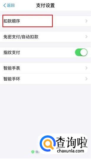 在支付设置界面,点击最上方的“扣款顺序”选项。