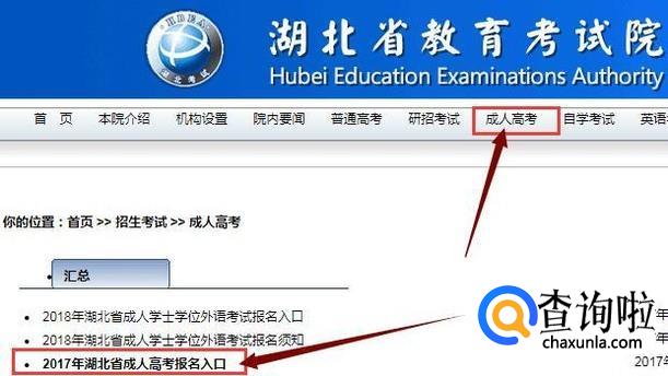 点击“成人高考”,接着找到当年的成人高考报名入口并点击。