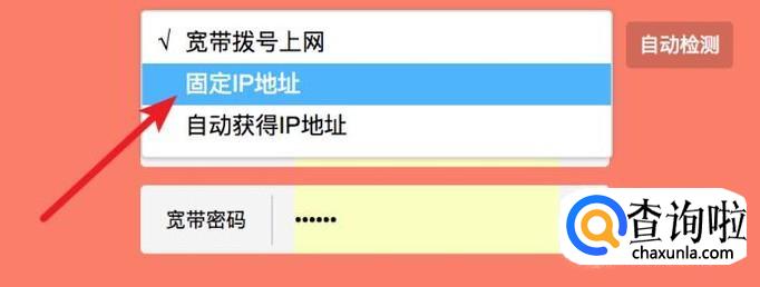 点击这个下拉菜单,在子菜单上选择‘固定IP地址’