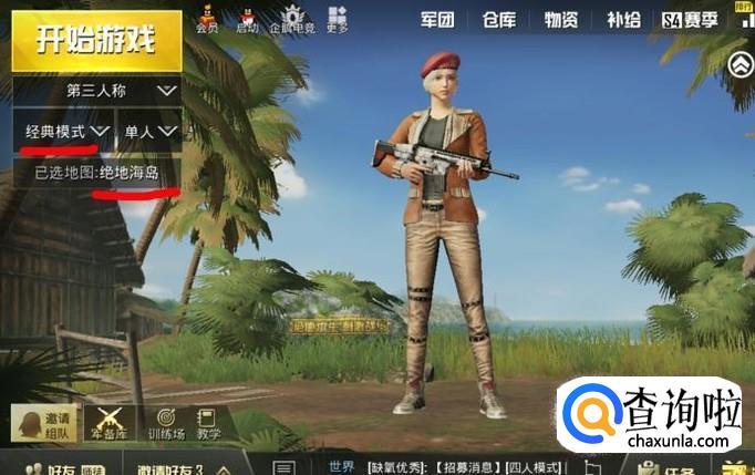 因为昼夜模式只有绝地海岛有,所以选择地图绝地海岛并为经典模式,如下图所示。