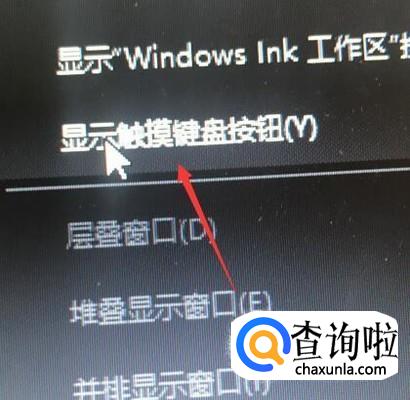 点击右键,然后选择显示触摸键盘按钮,接着选择这个按钮,就能将屏幕键盘显示出来了。