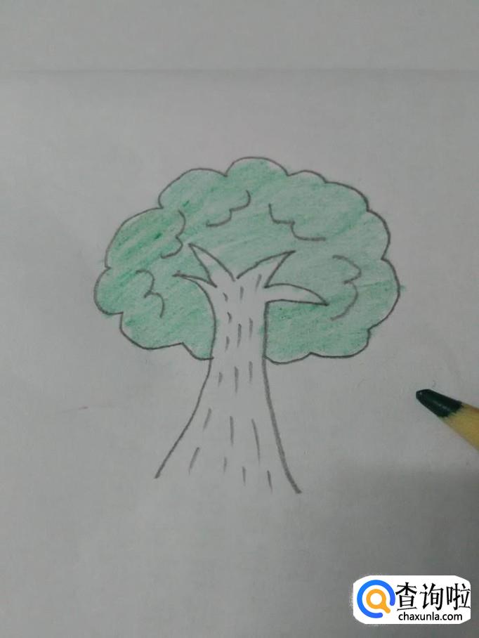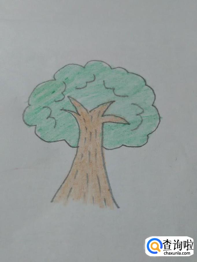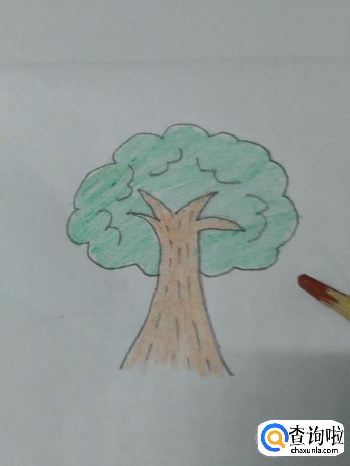 再用棕色笔把树干涂成棕色,大树就画完了。