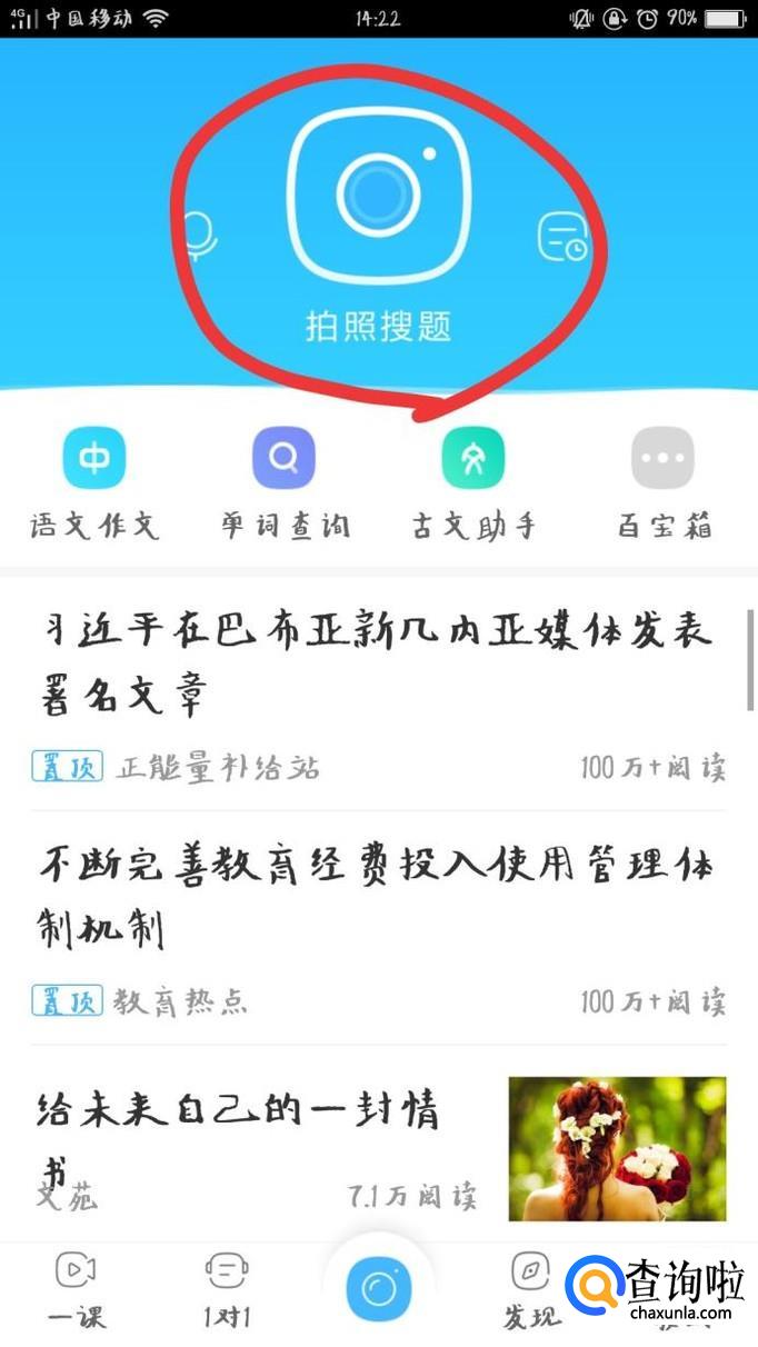 进入软件首页界面,点击“拍照搜题”图标。进入拍照,可随意拍任意画面,完成后点击确认。