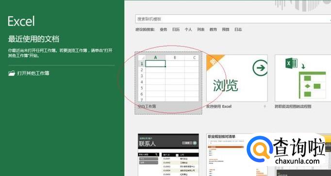 启动EXCEL 2016电子表格软件,点击屏幕右侧"新建空白工作簿"图标。
