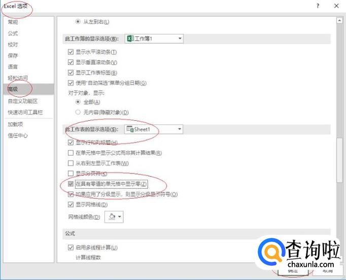 勾选"此工作表的显示选项→在具有零值的单元格中显示零"复选框,本例到此希望对大家能有所帮助。