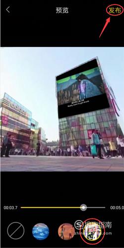 点击第四个创意模块,视频会呈现在商场的屏幕上。三个创意模板可以根据自己的爱好,选择自己喜欢的模板。选择完成之后,点击“发布”快速分享给好友。