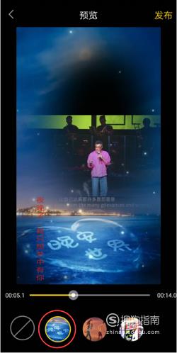 点击第二个创意模板,视频会呈现在模板中间部分为椭圆形,模板主题为“晚安世界”。
