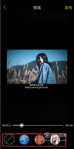 在预览页面下方,有四种模式可以选择,第一种是原视频本身,没有添加任何创意模板。